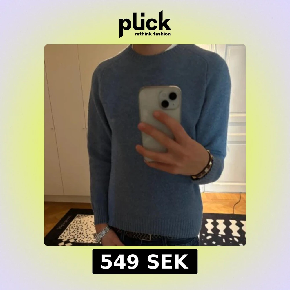 Säljer en snygg blå stickad tröja från Uniqlo. Den är perfekt för kyliga dagar med sin mjuka och varma känsla. Tröjan har långa ärmar och en klassisk rund halsringning. Passar både till vardags och lite finare tillfällen. 🧶💙