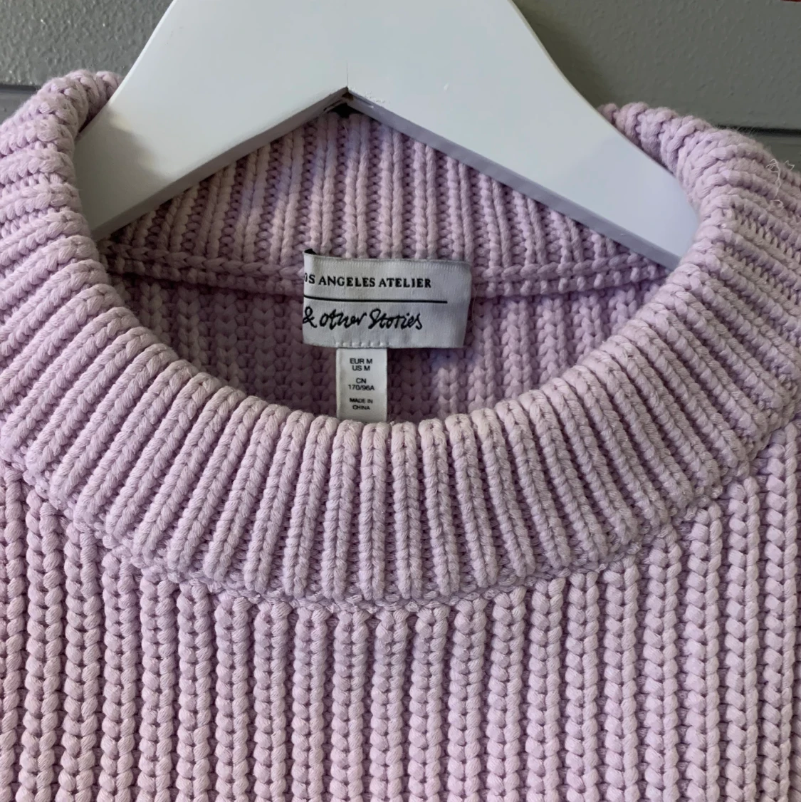Superfin lavendel/ljuslila stickad tröja som är croppad! Från &other stories i strl M (passar mig som är S också). Använt fåtal gånger✨ den är ganska tjock och tung så perfekt till kalla vårdagar🌸 köparen står för frakt /Lisa