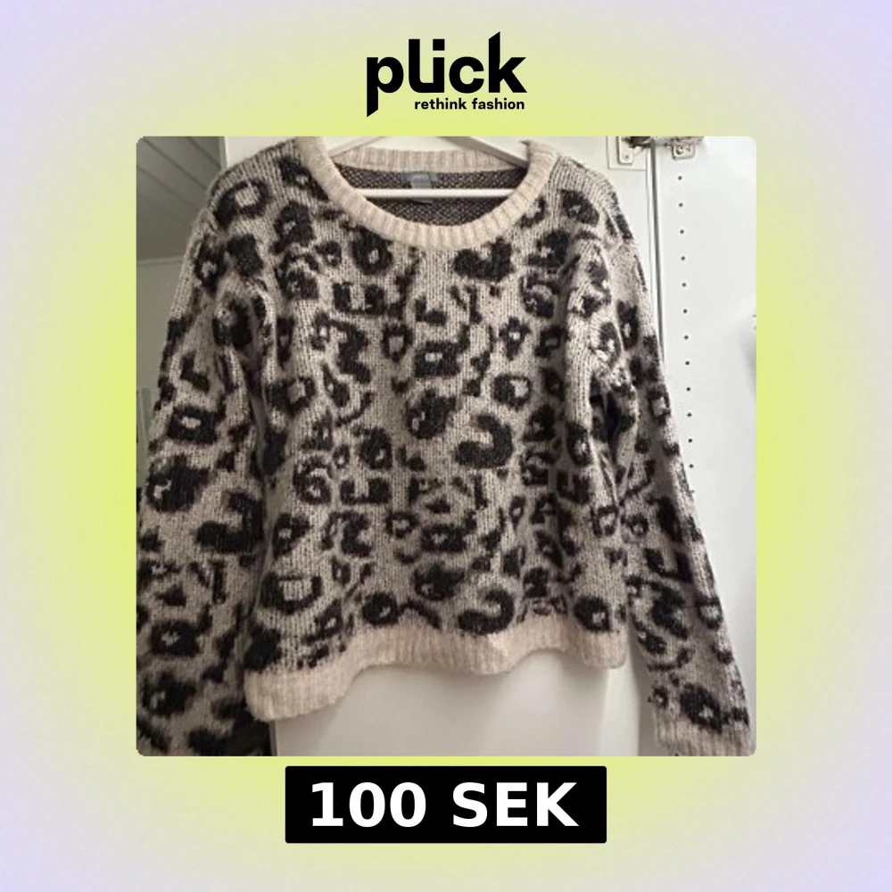 säljer en stickad tröja med leopardmönster i svart och beige, den är inte stickig 💘