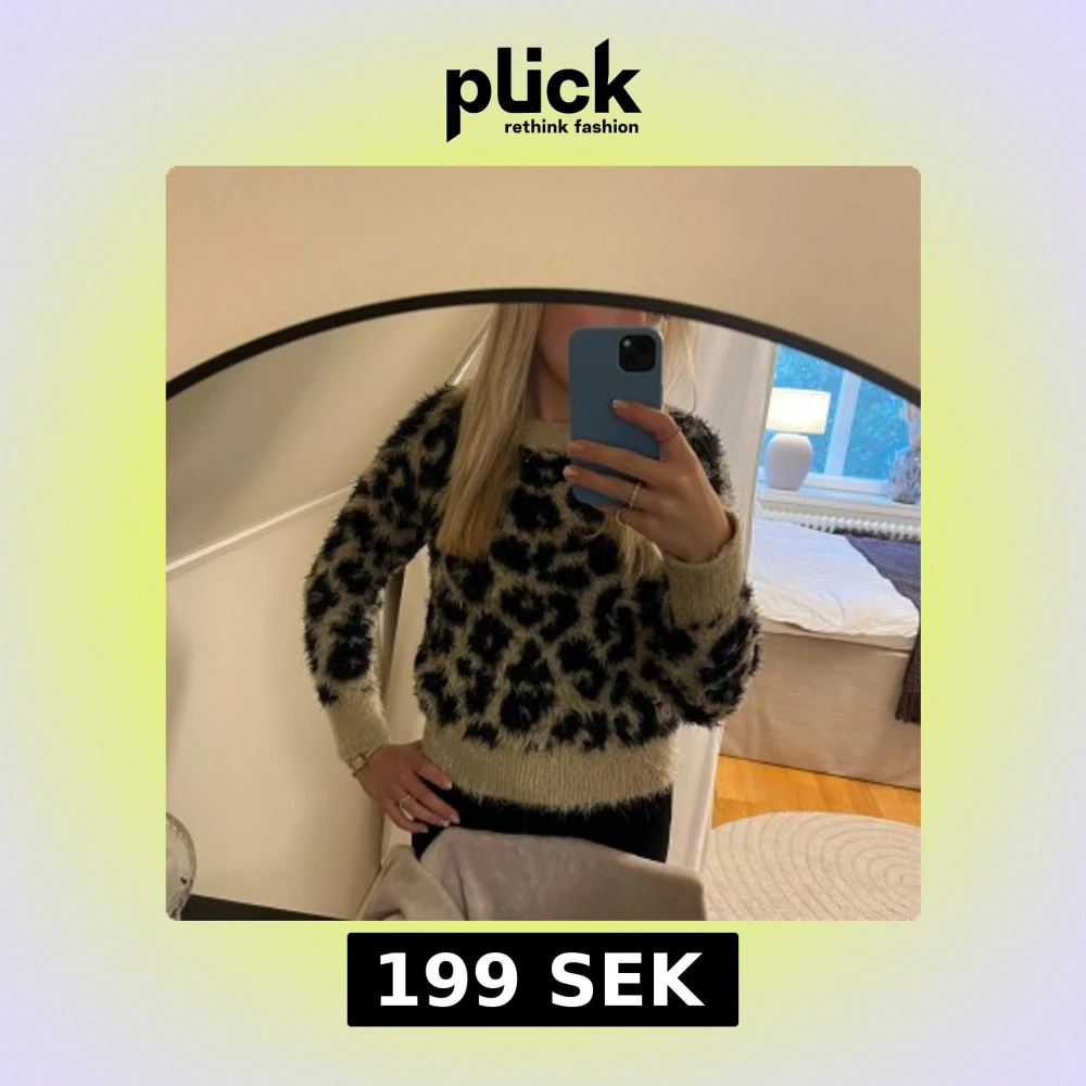 Fluffig stickad tröja från Sisters Point i beige och svart leopardmönster (storlek xs).
