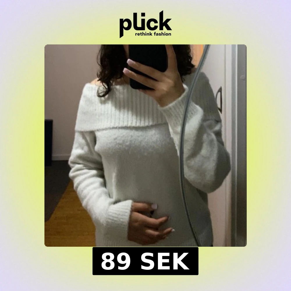 Vit offshoulder stickad tröja