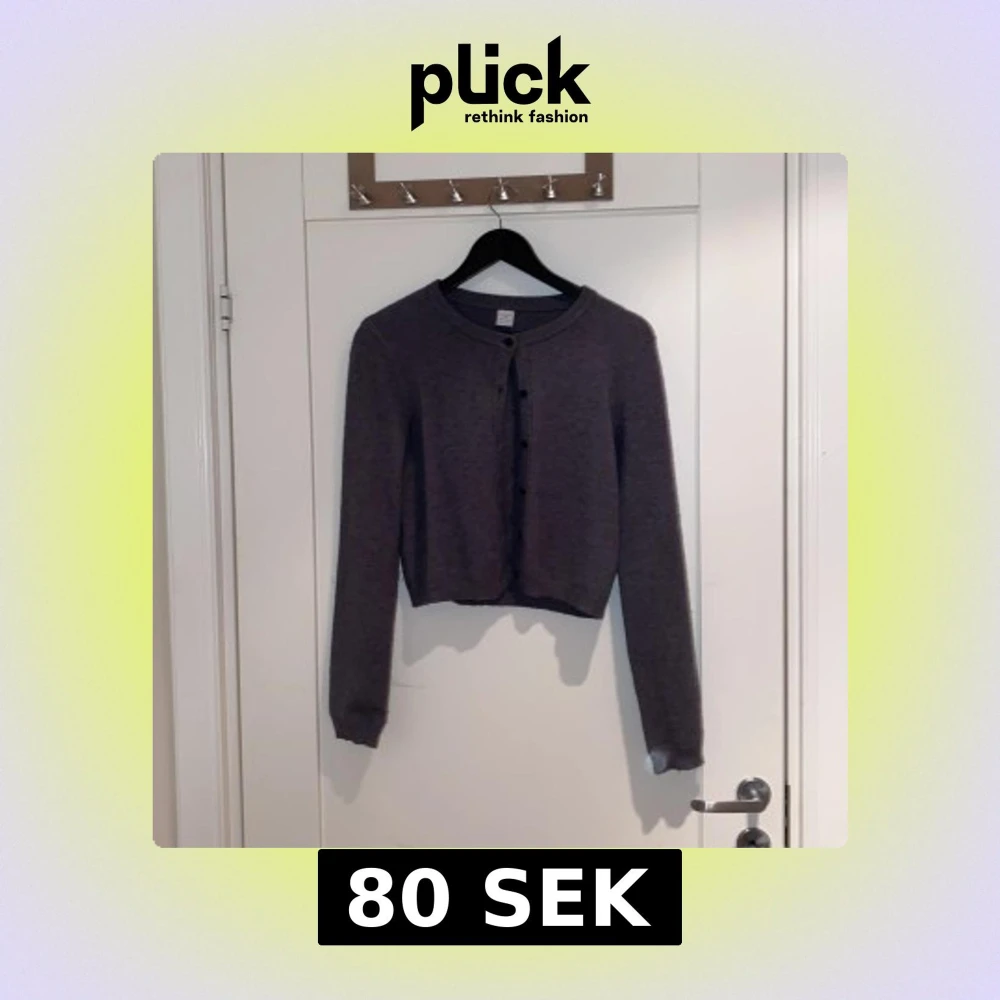 Mysig mörkgrå kofta från Lindex med rund halsringning och knappar framtill. Långärmad och i stickad kvalitet, perfekt för lager på lager. Säljer tröjan för att den är för liten och att jag aldrig har använt den