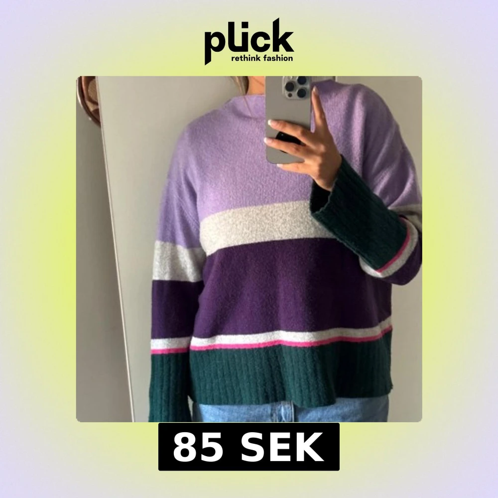 Säljer en mysig flerfärgad stickad tröja. Tröjan har en avslappnad passform. 💕
