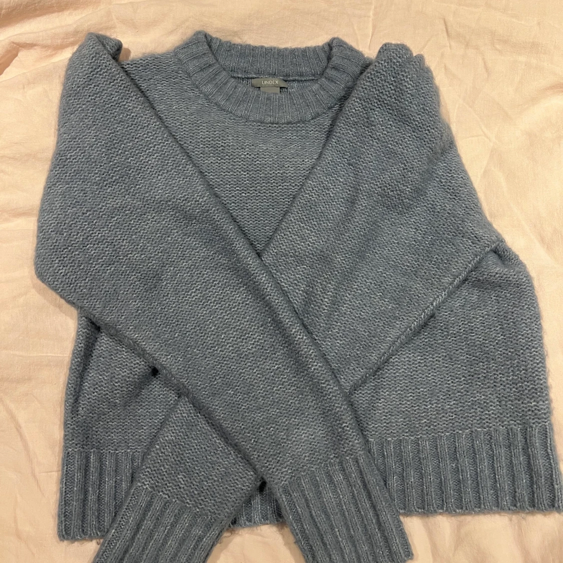 Blå stickad tröja från Lindex i storlek M som bara har provats. Kan både posta och mötas upp och kan även skicka fler bilder om det önskas! 💕