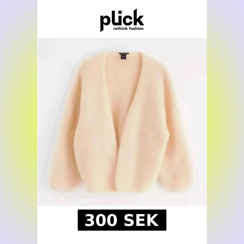 Supermysig och fluffig beige kofta från H&M med oversized passform och långärmade, breda ärmar. Koftan är stickad och har en öppen front utan knappar, perfekt för lager på lager. Passar dig som gillar chill och comfy vibes.
