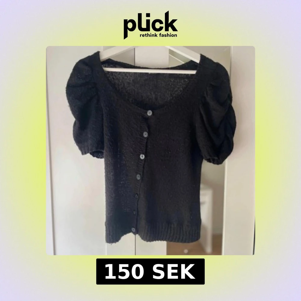 Svart stickad blus med korta puffärmar och knappar framtill. Snyggt ribbad nederkant och ärmslut ger en extra touch. Perfekt för dig som gillar en söt men stilren look.