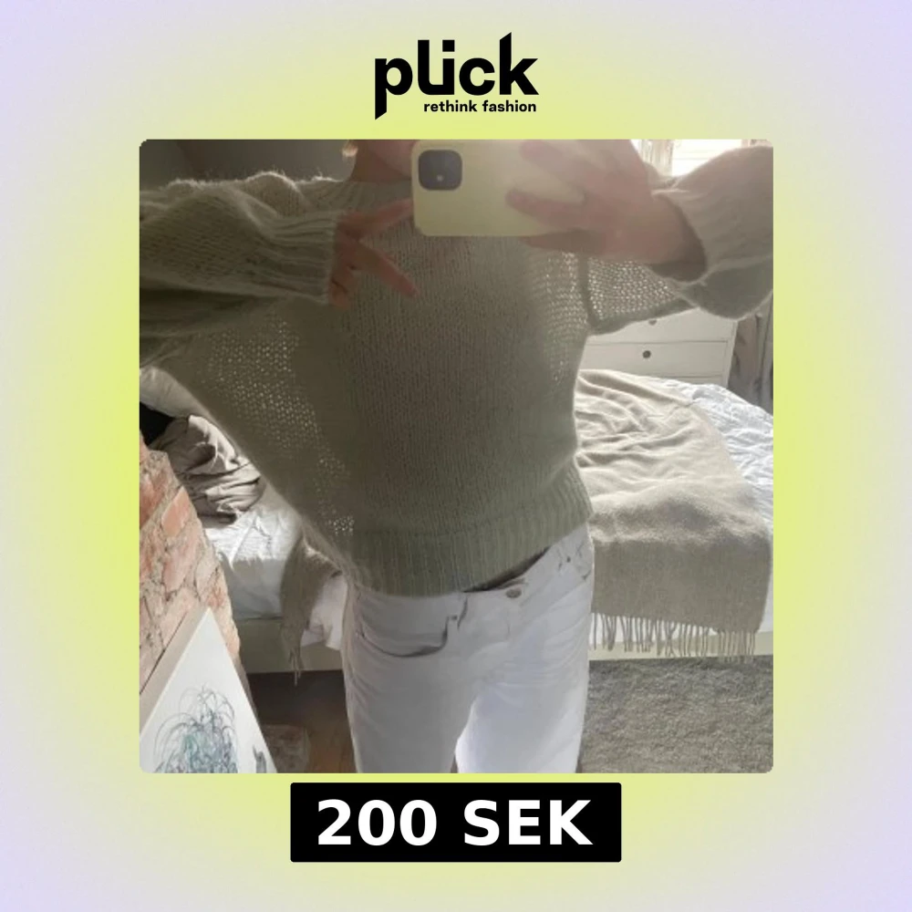 Mintgrön stickad, et litet uttöjt hål men annars annars inget tecken på användning☺️