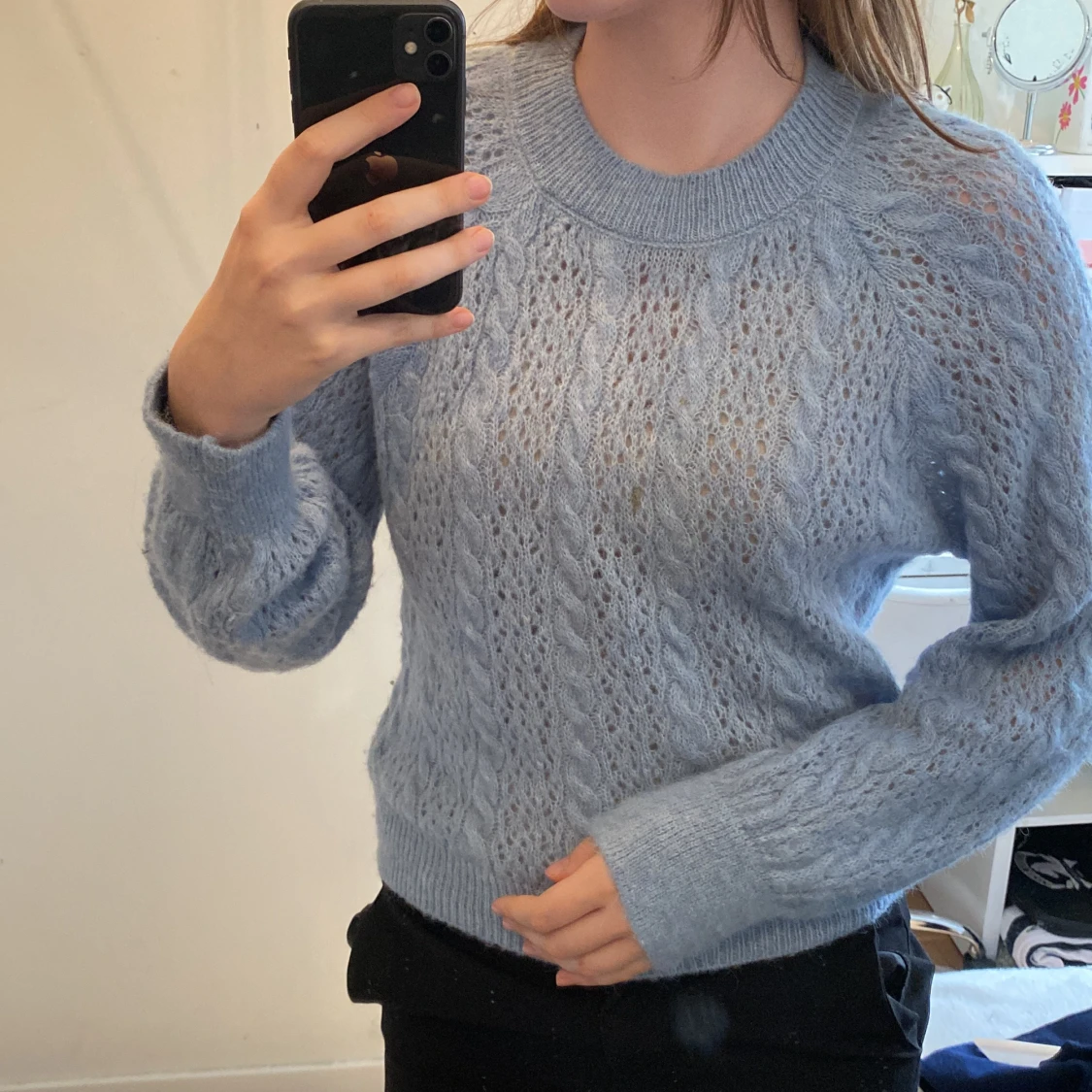 Ljusblå stickad tröja från Mango. Använt fåtal gånger och är som ny. Skriv gärna i dm för frågor och bilder 💕