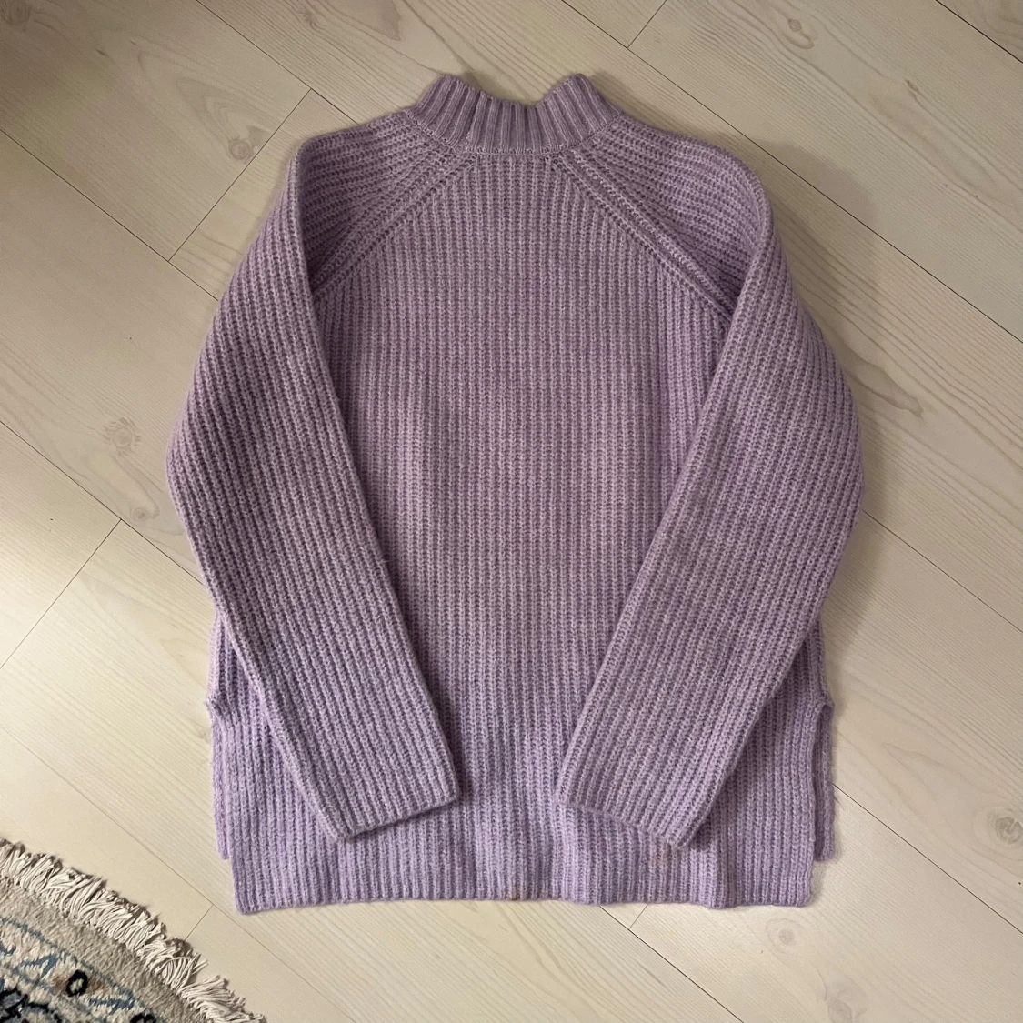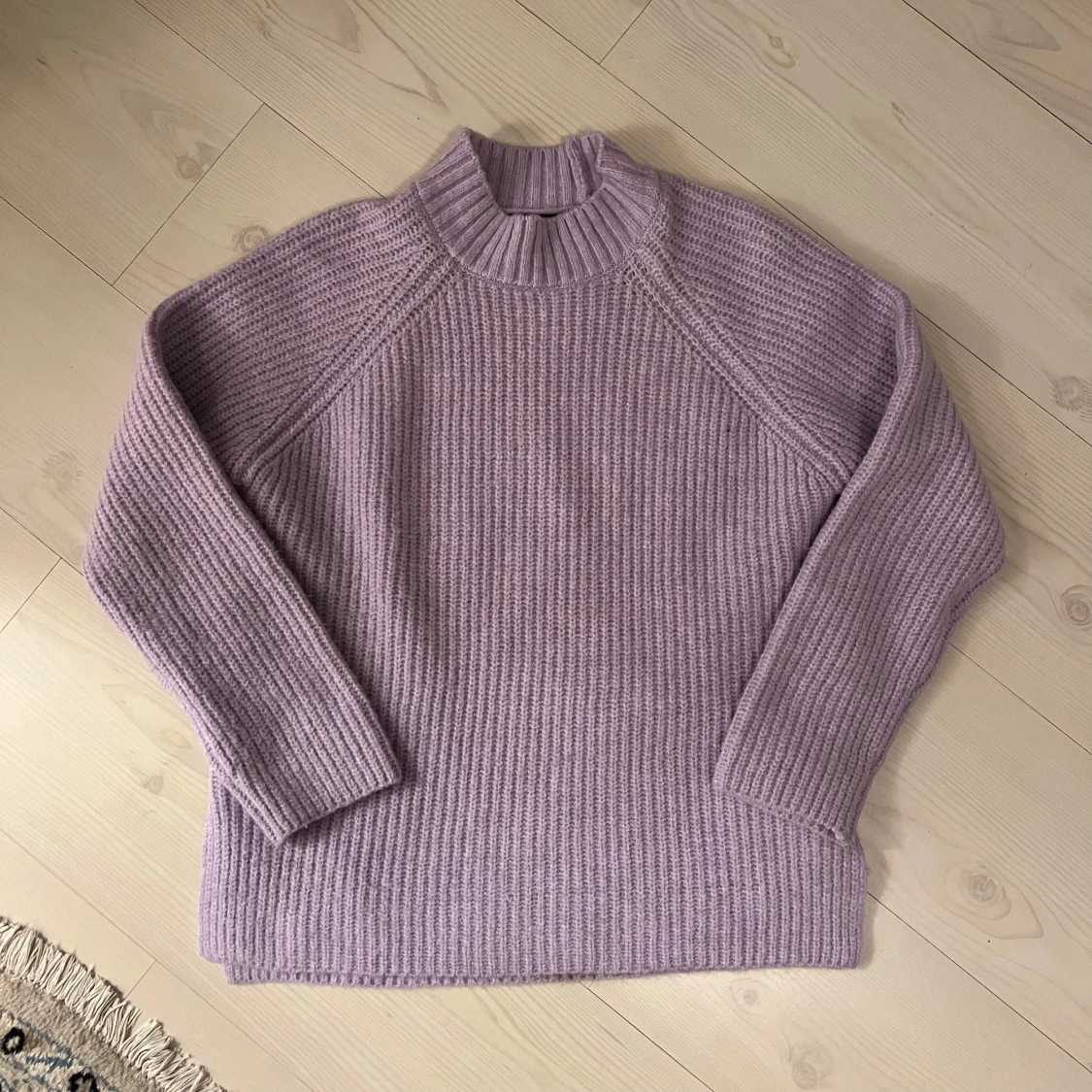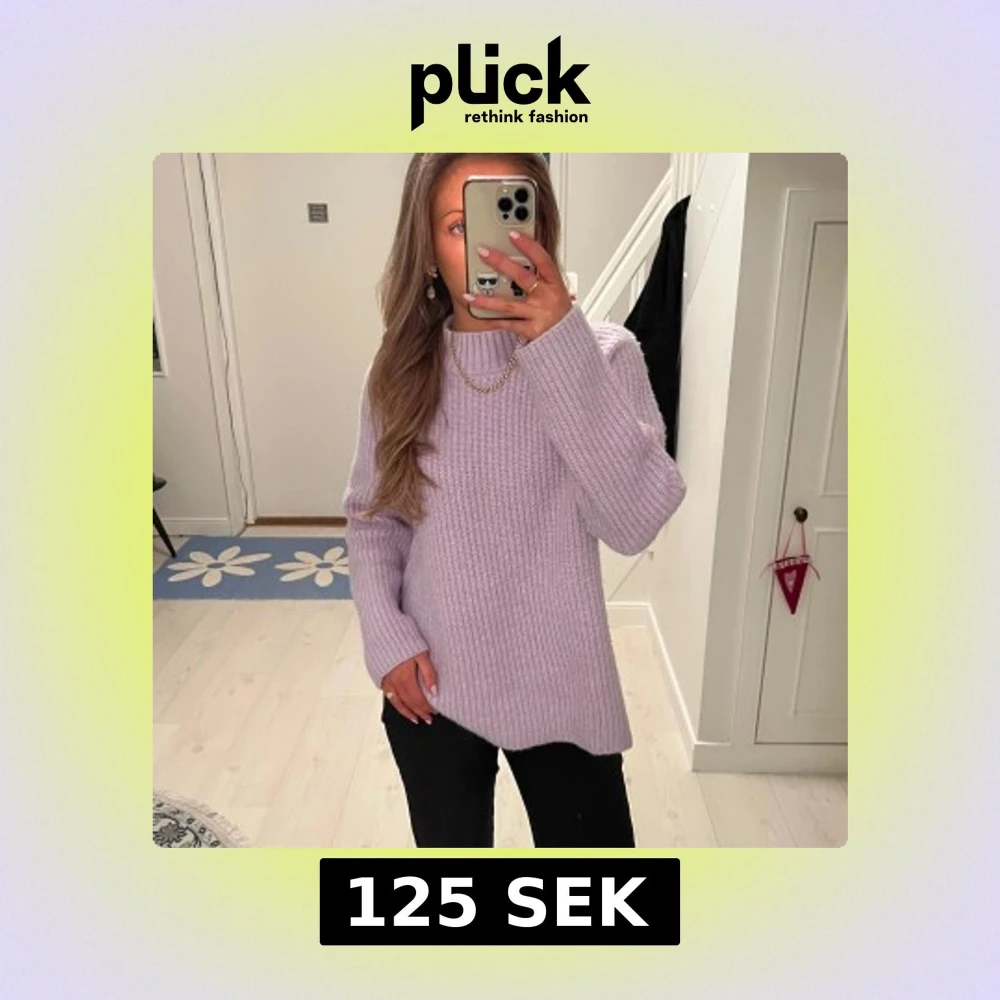 Mysig ljuslila stickad tröja med halv polo. Den har slits på sidorna. Pris kan alltid diskuteras❤️