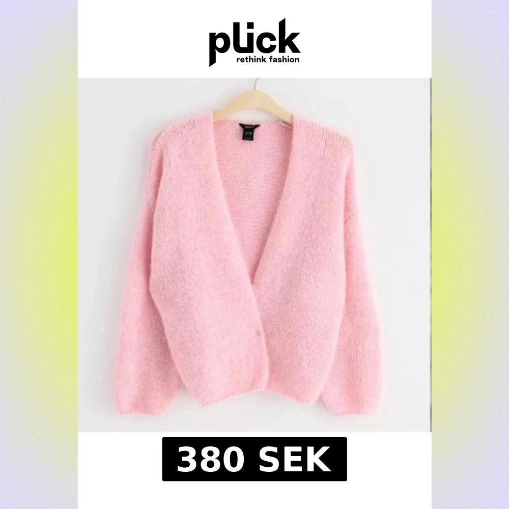 Supermysig ljusrosa kofta från Lindex med fluffig och stickad känsla. Koftan har en djup v-ringning, långärmade ärmar och loose passform. Perfekt att slänga över en topp för en chill och söt look.