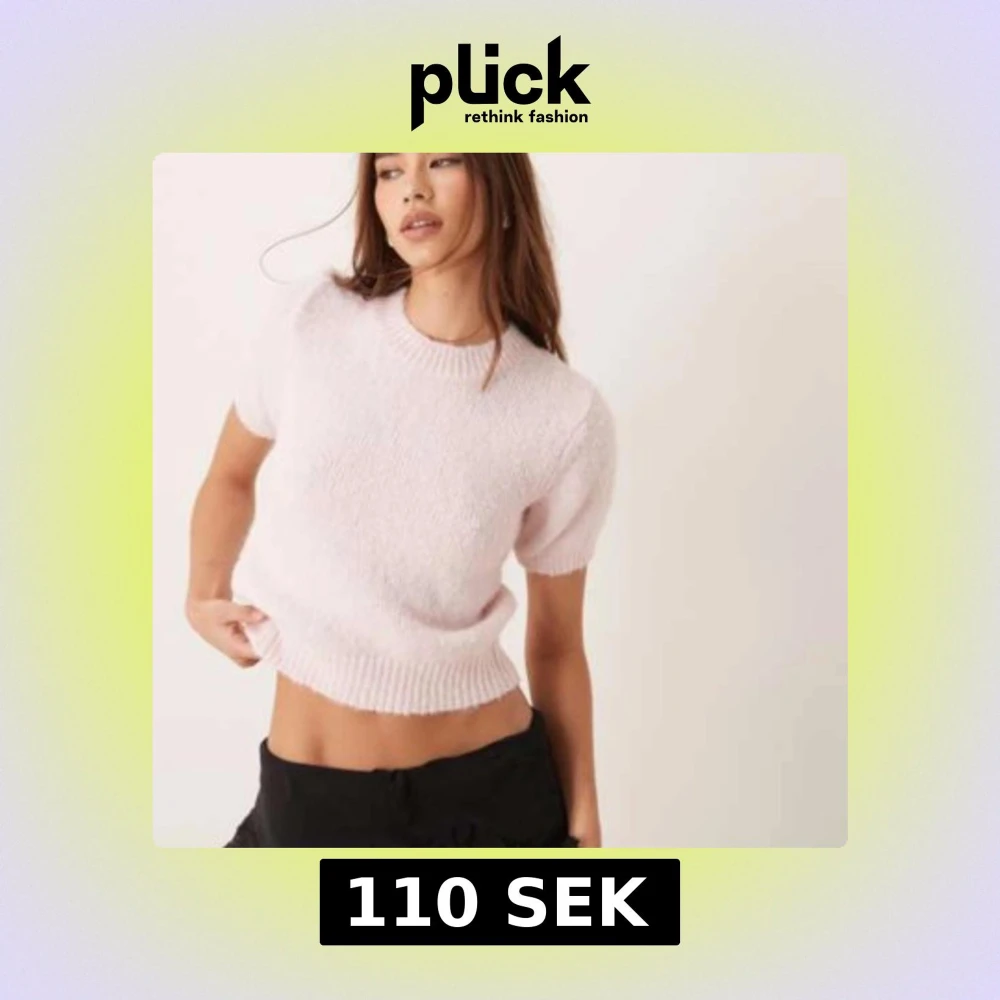 Superfin ljusrosa stickad tröja från Gina Tricot med korta ärmar och rund hals. Tröjan är mjuk och fluffig, perfekt för lager-på-lager och har en croppad passform som ger en trendig look. Mycket fint skick, knappt använd