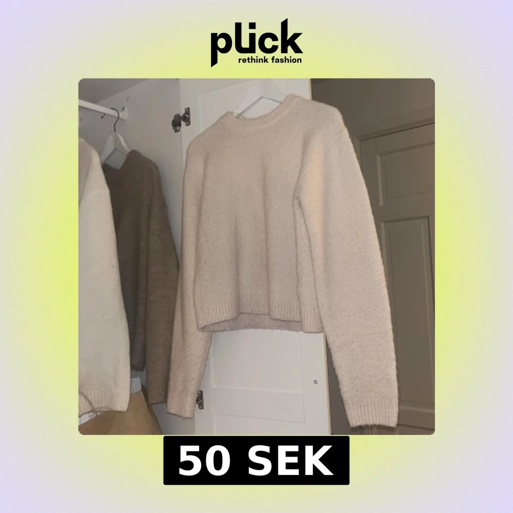 Mysig ljusrosa stickad tröja från H&M i storlek XS. Tröjan är ljusrosa men kan tolkas som offwhite eller nån annan färg i vissa ljus. Den är nopprig därav priset.