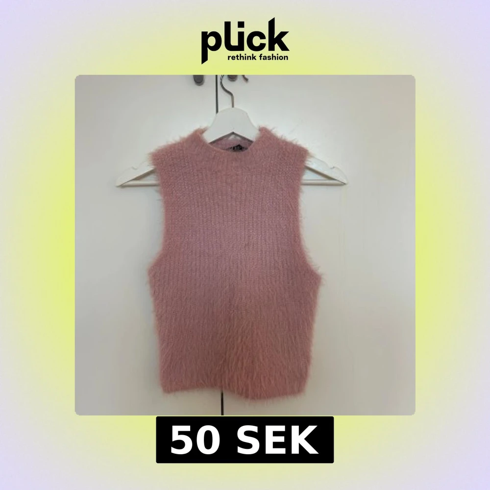 Fluffig ljusrosa stickad väst från Zara. Den har en hög halsringning och är ärmlös.