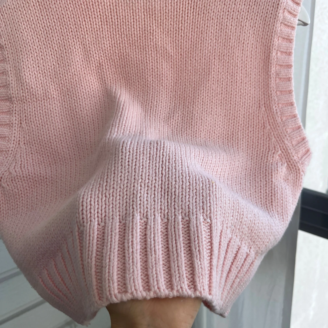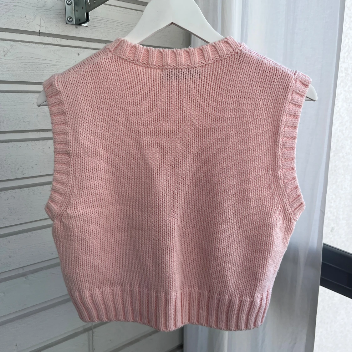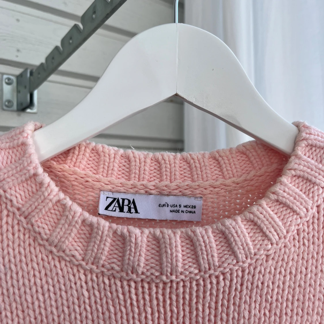 Superfin ljusrosa stickad väst från Zara med bred ribbad kant vid hals, ärm och nederkant. Västen är croppad och har en klassisk, enkel design som är lätt att styla över en skjorta eller t-shirt. Perfekt för lager-på-lager-look!