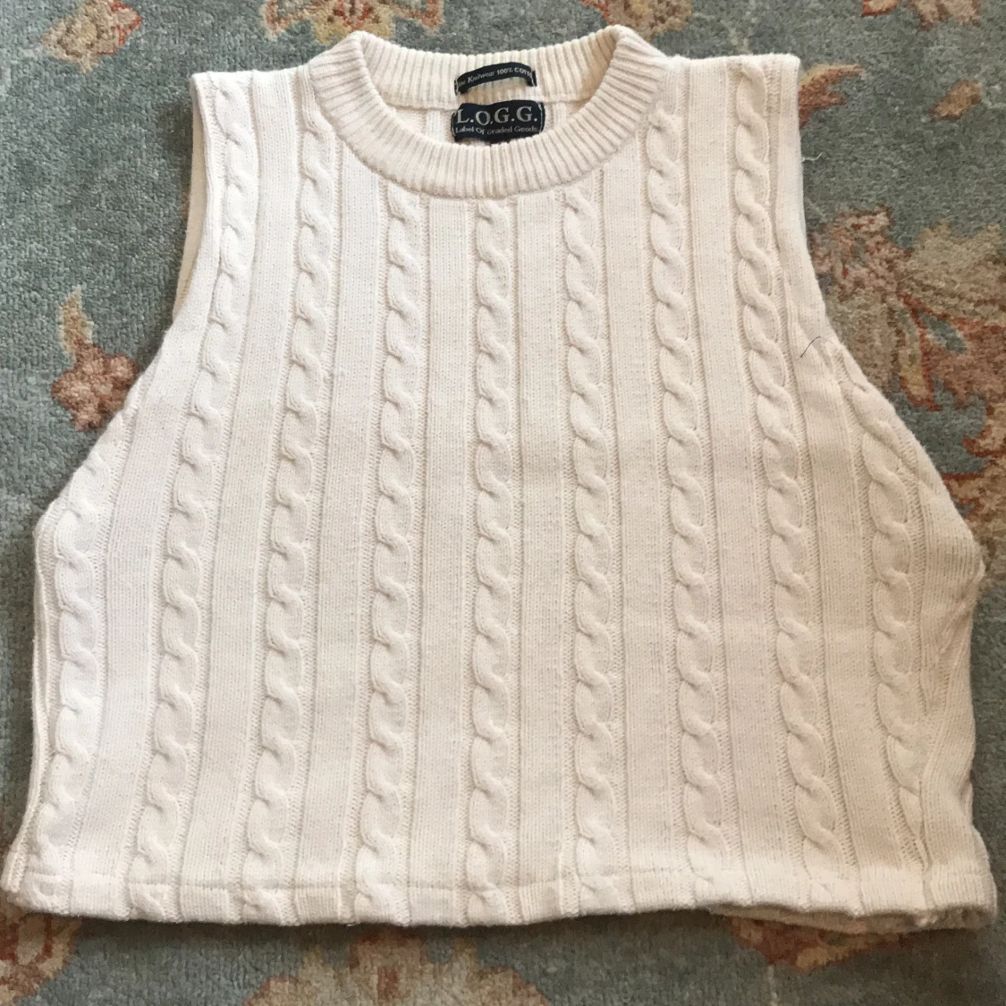 Trendig vit stickad väst från LOGG. Sydde om själv till väst från kofta. Sitter snyggt oversized skulle säkert passa XS-L beroende på vilken passform man vill ha