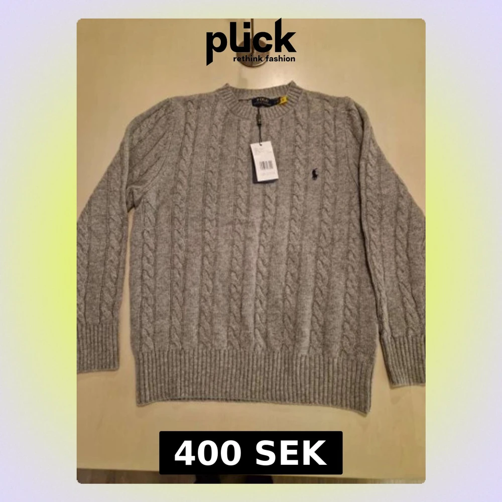 Kabelstickad grå tröja från Polo Ralph Lauren med rund halsringning och broderad marinblå logga på bröstet. Tröjan har ribbade muddar och nederkant, perfekt för lager-på-lager-stil. Klassisk och tidlös design.