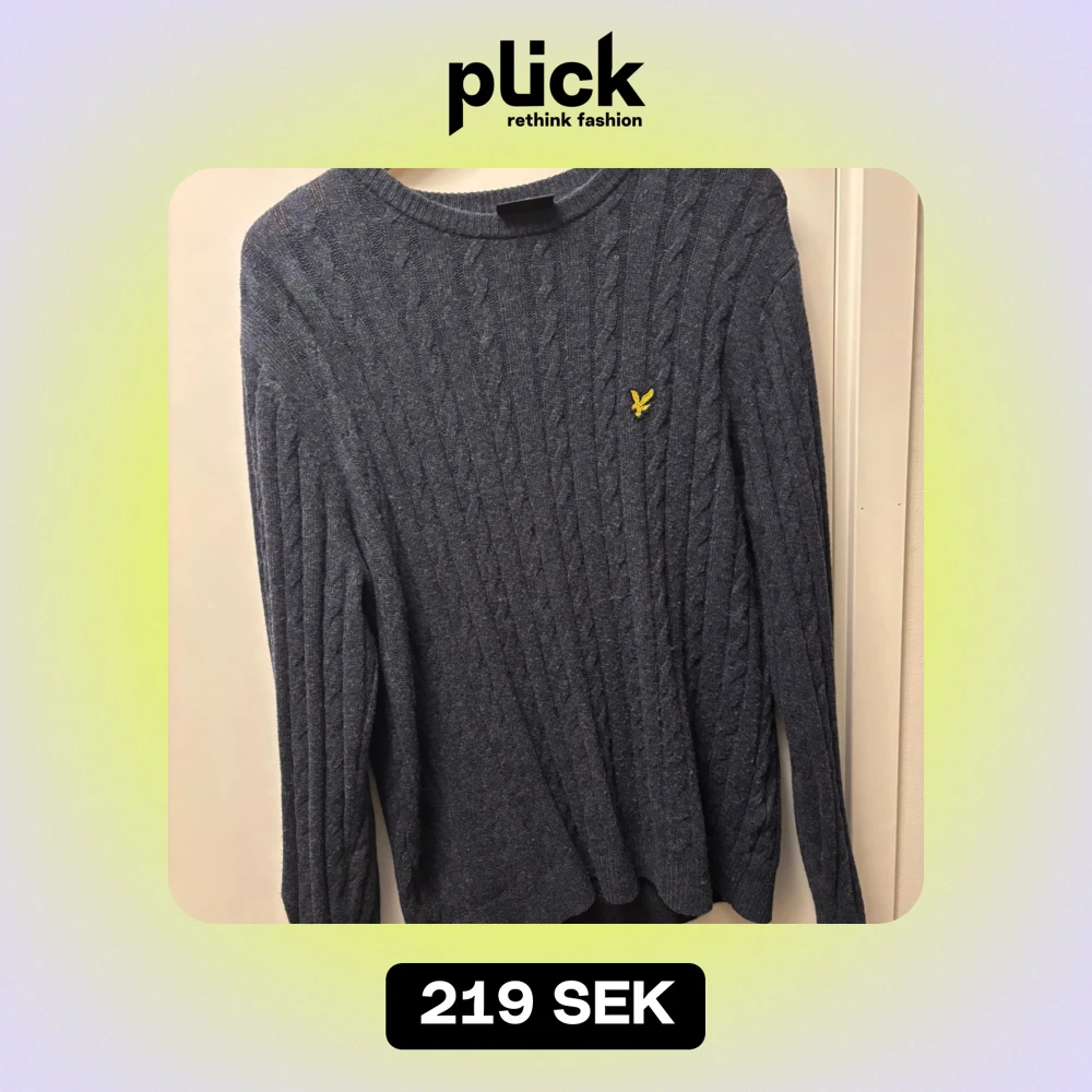 Säljer en snygg mörkblå stickad tröja från Lyle & Scott i storlek L. Tröjan har ett diskret kabelstickat mönster och en gul logga på bröstet. Perfekt för kyliga dagar och passar både till vardags och lite finare tillfällen. Den är gjord av 60% bomull och 40% ull, vilket gör den både varm och bekväm.