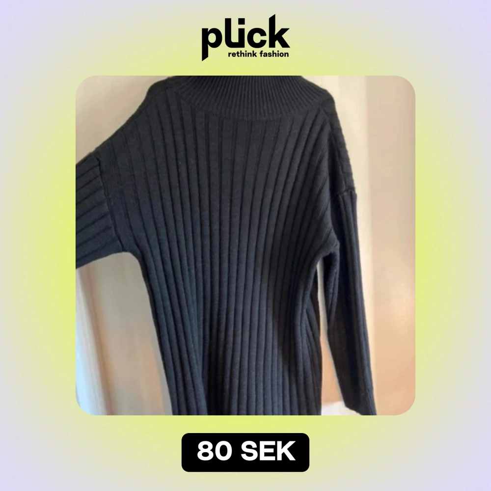 Stickad svart tröja lite lång, når till ungefär under rumpan