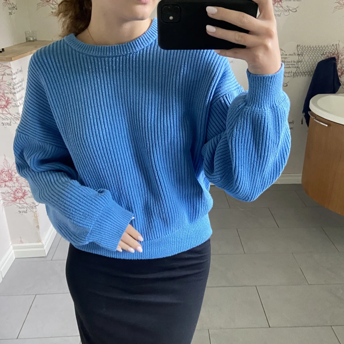 säljer denna fina blåa stickade tröja ifrån zara, då den inte kommer till användning!