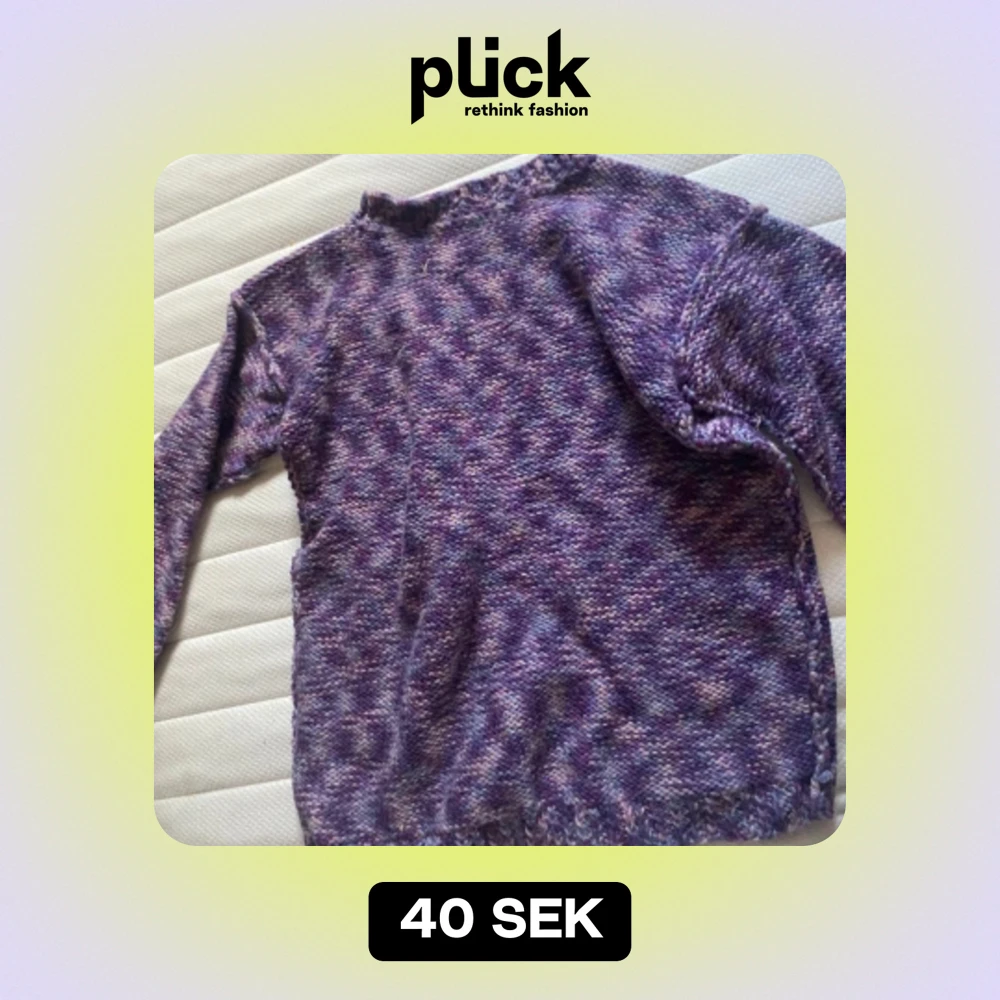 Stickad tröja åt det lila hållet. Vet inte vart den är ifrån då jag inte hittar några lappar skulle gissa att den är storlek M. Aldrig använd