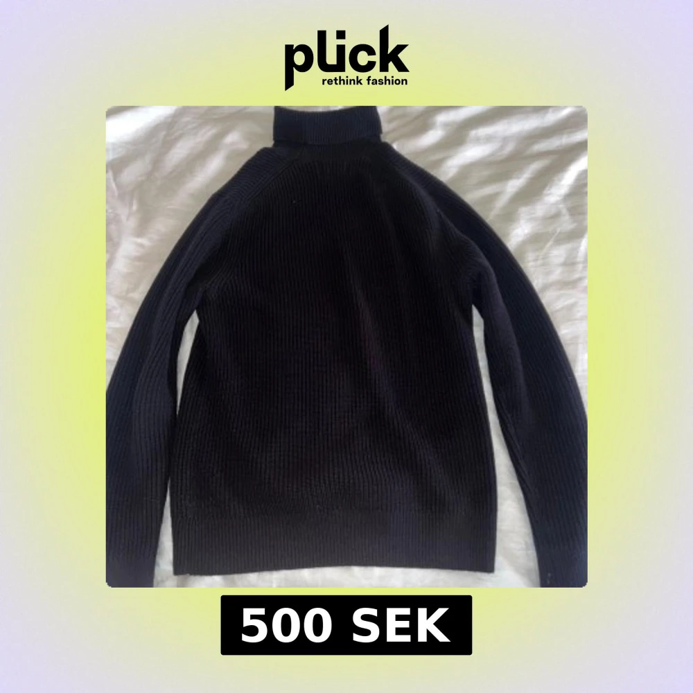 Säljer en stilren mörkblå stickad east west tröja i storlek M. Perfekt för kyligare dagar med sin höga krage och ribbade struktur. Passar både till vardags och mer uppklädda tillfällen.