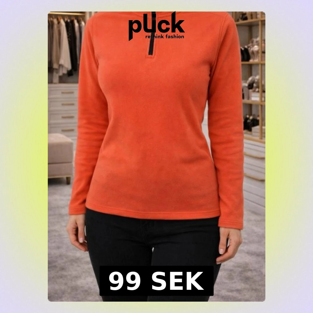 Mysig orange fleece-tröja med lång ärm och halv dragkedja framtill. Perfekt för lager-på-lager och chill dagar. Tröjan har en enkel, rak passform och mjukt material som känns skönt mot huden.
