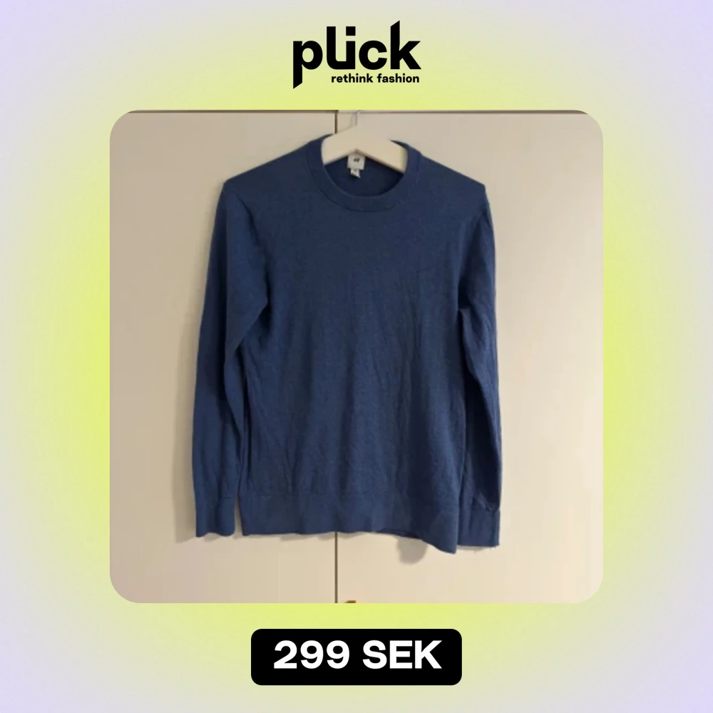 Stickad blå tröja från HM i delvis Kashmir, skick 7/10 Storlek M men passar snarare S skulle jag säga.