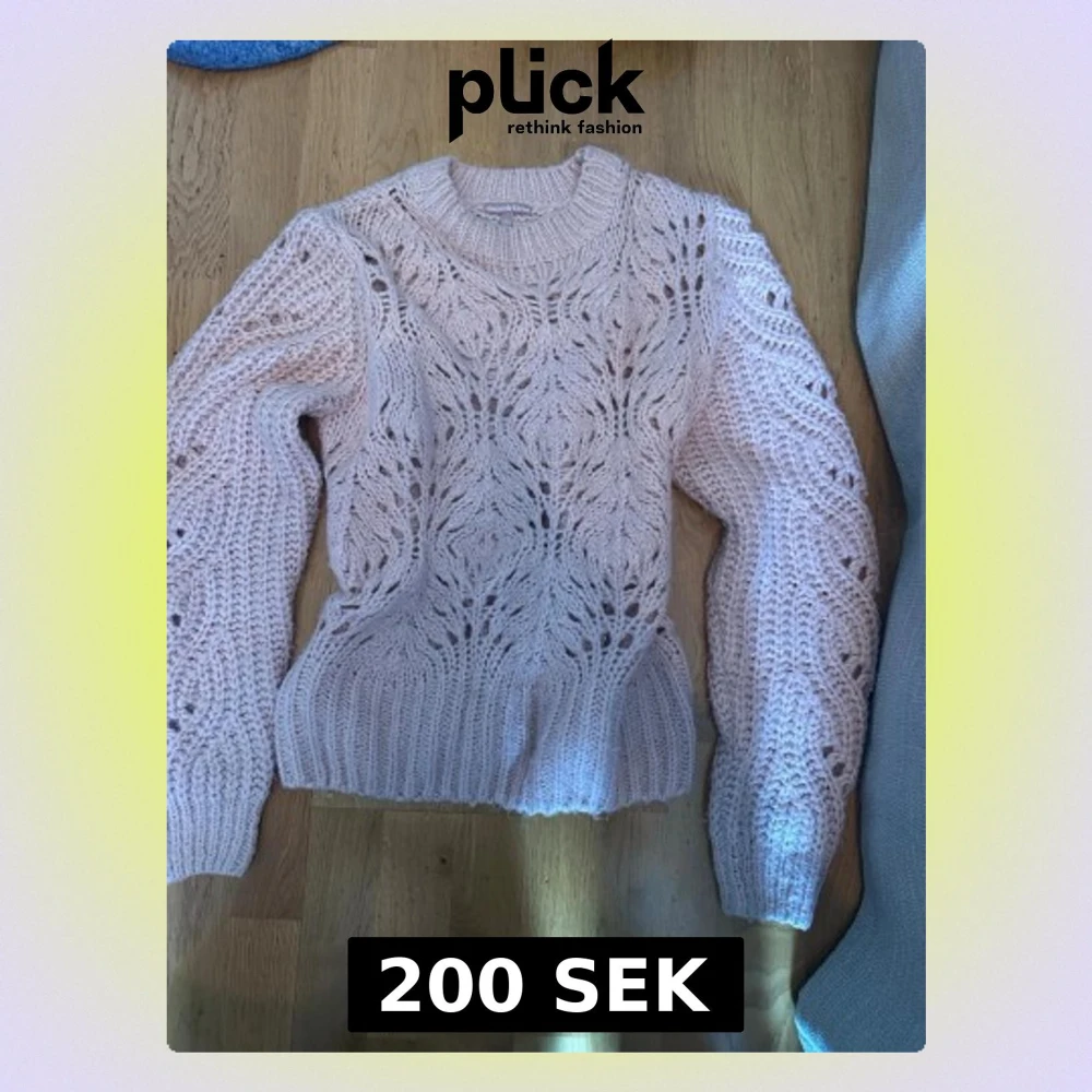 Supersöt ljusrosa stickad tröja från Sincerely Loved med ett detaljerat hålmönster och breda ribbade muddar. Tröjan har rund halsringning och är gjord i ett mjukt, tjockt garn som känns riktigt mjuk.