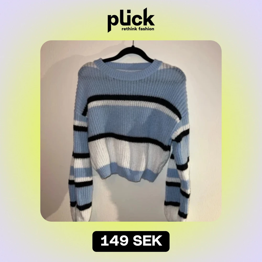 En blå/svart/vit randig stickad tröja ifrån Shein♥️ Storlek: M♥️ ♥️♥️♥️