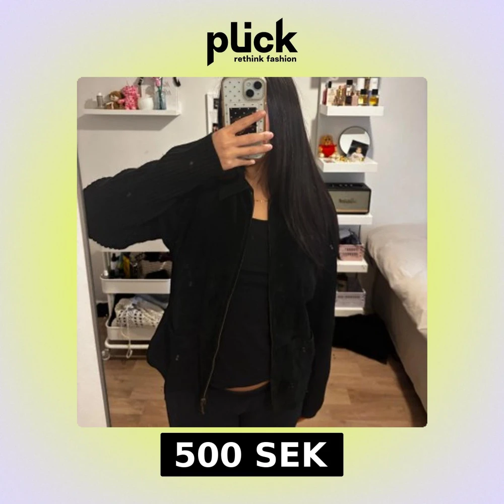 Säljer en stilren svart mocka jacka med med stickade ärmar. Jackan har en normal passform, perfekt för höst och vår. Den är enkel och mångsidig, vilket gör den lätt att matcha med många olika outfits. Passar S/M
