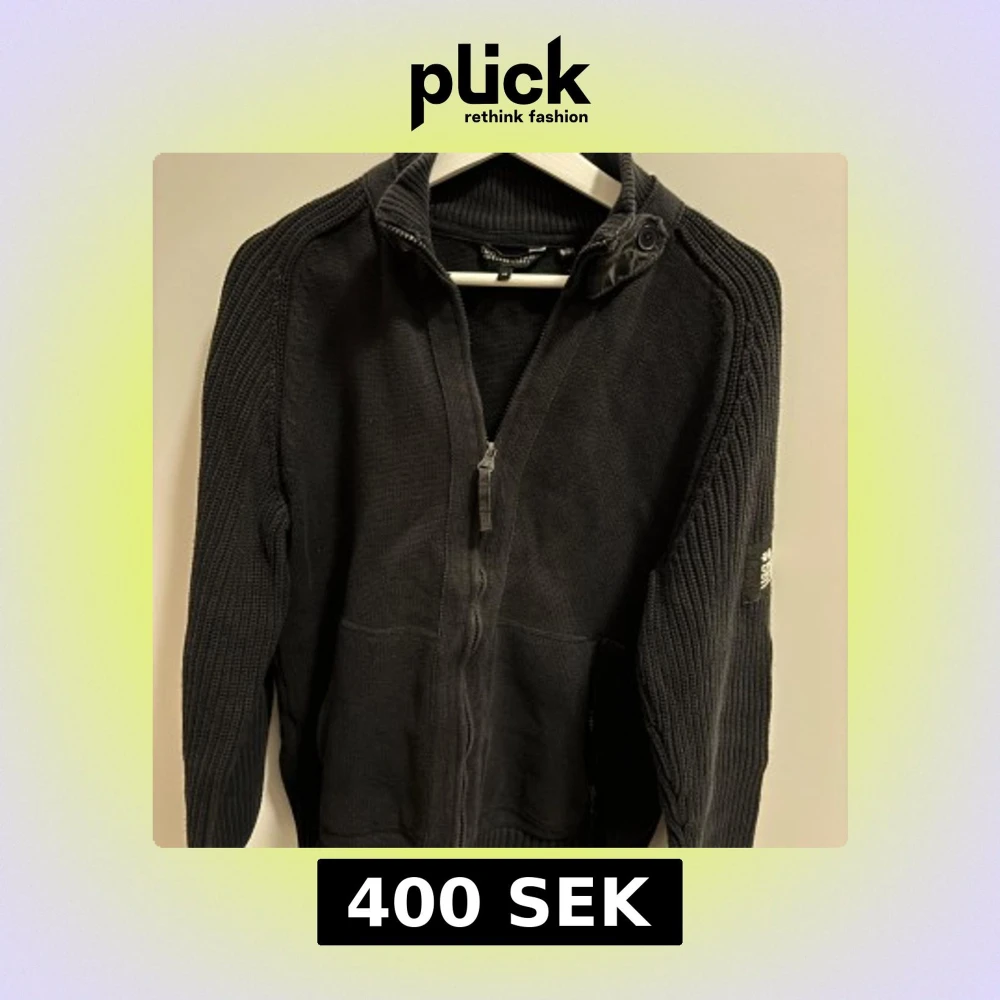 Säljer en svart stickad tröja från Crosshatch Black Label. Tröjan har en dragkedja framtill och långa ärmar med ribbade detaljer. Perfekt för kyligare dagar. Nypris 800
