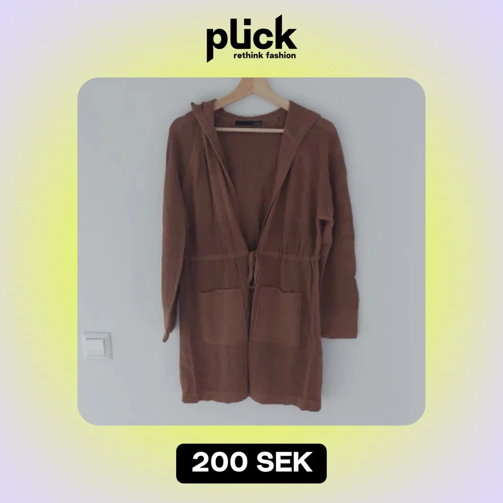 Säljer en mysig brun finstickad kofta från LeComte. Den har en huva och knytband i midjan för en bekväm passform. Perfekt för höst och vinter, med långa ärmar och praktiska fickor framtill. Superfin att ha på sig nu i höst!