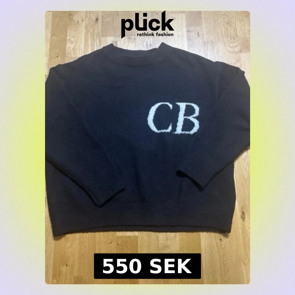 Säljer en svart stickad tröja från Cole Buxton med stora vita bokstäver 'CB på bröstet. Tröjan har rund hals, ribbade muddar och en loose passform som ger en avslappnad vibe. Perfekt för dig som gillar streetwear.