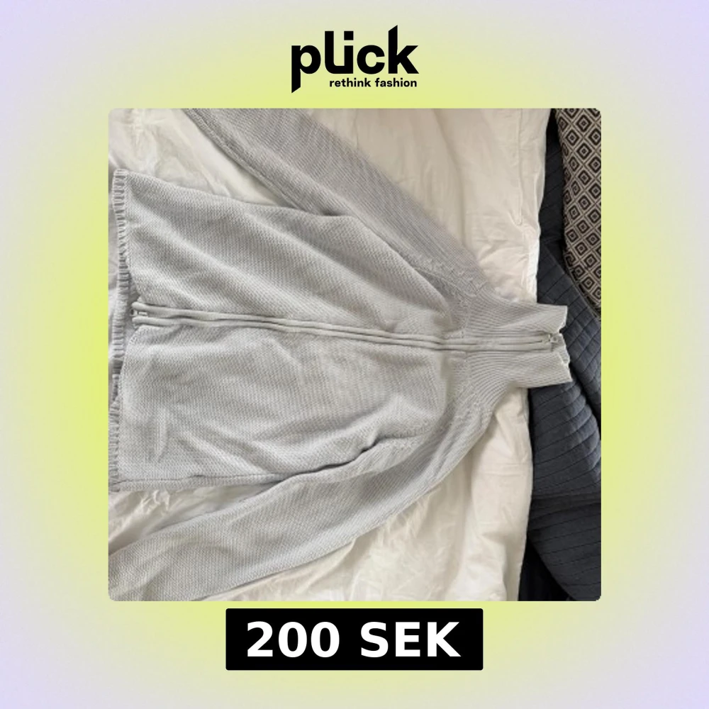 Säljer en ljusblå stickad kofta med hel dragkedja framtill och ribbad krage. Koftan har långärmad design och är perfekt för lager-på-lager. Enkel och stilren modell som passar till det mesta. Passar S-L