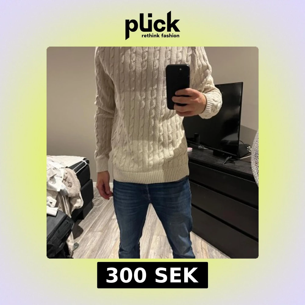 Säljer en beige kabelstickad tröja från Selected Homme. Använd fåtal gånger