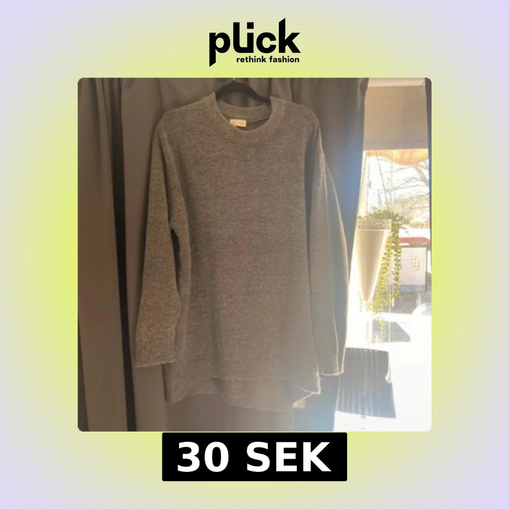 Mysig grå stickad tröja med rund halsringning Tröjan har en något längre passform