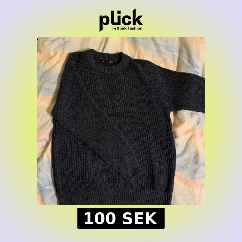 Säljer en stilren mörkblå stickad tröja med rund hals och långa ärmar. Perfekt för kyliga dagar och passar bra till både jeans och chinos. Tröjan har en klassisk design med ribbstickade muddar vid ärmslut och nederkant.