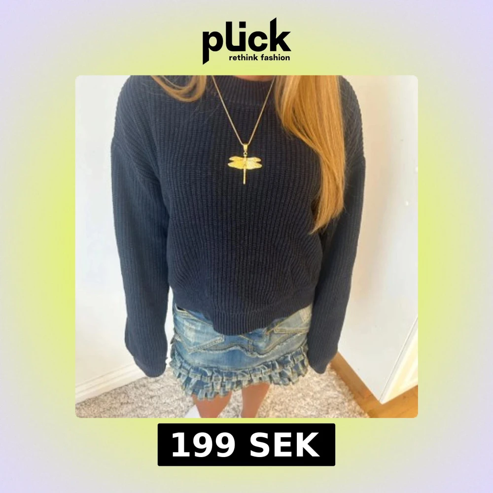 Blå stickad tröja hm🥹🥹