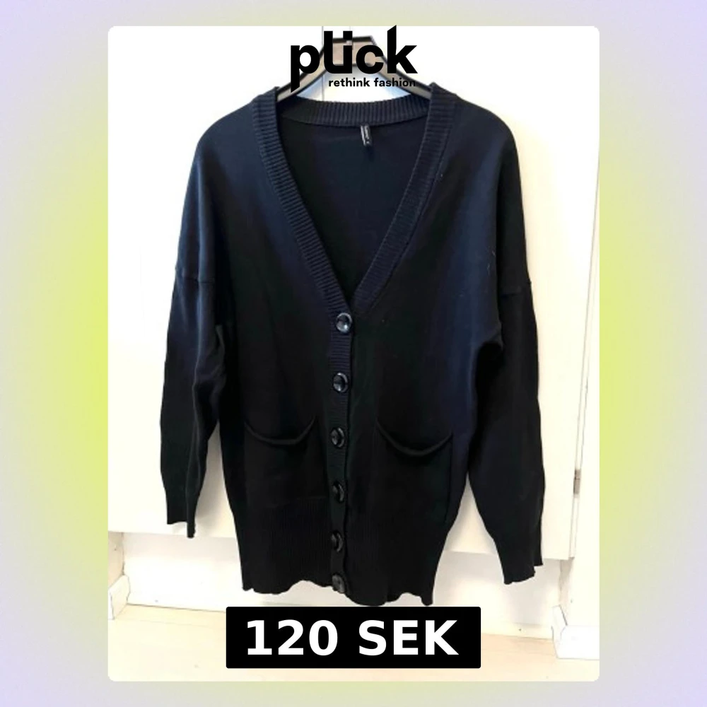 Klassisk svart kofta från b.young i 100% bomull. Modellen har djup v-ringning, stora knappar framtill och två fickor. Perfekt oversized känsla och ribbade muddar vid ärmslut och nederkant. Enkel att styla till allt.