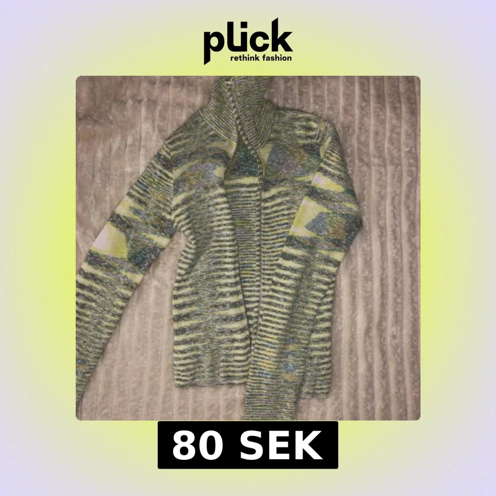 Säljer en unik grönmönstrad stickad tröja med dragkedja. Tröjan har långa ärmar och ett iögonfallande geometriskt mönster i olika gröna nyanser.