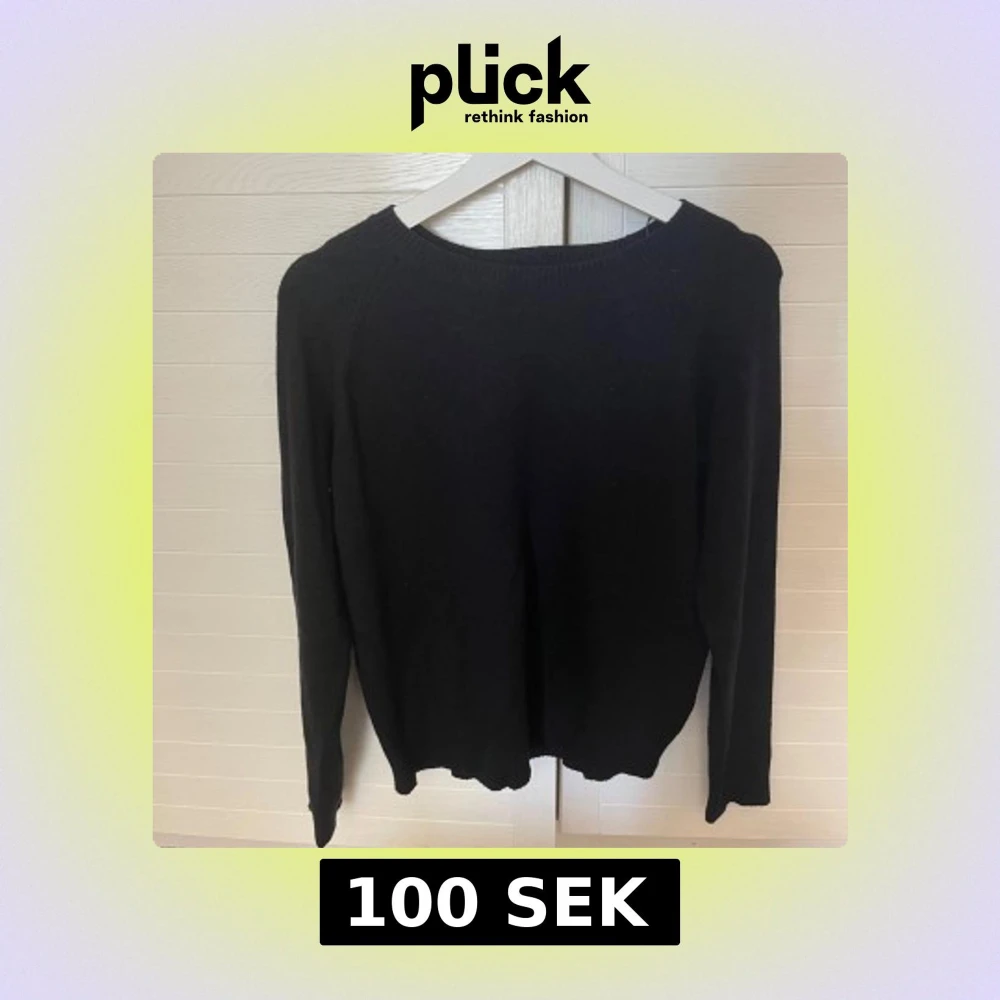 Enkel svart stickad tröja med rund halsringning och långa ärmar. Tröjan har en klassisk passform och ribbade muddar vid ärmslut och nederkant. Perfekt att matcha med jeans eller kjol för en stilren look. Tröjan är aldig tidigare använd.