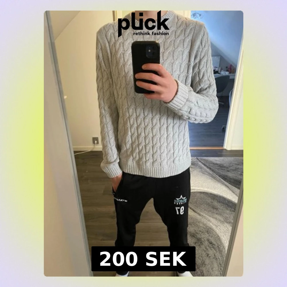 Säljer en ljusgrå kabelstickad tröja med rund halsringning och ribbade muddar vid ärmslut och nederkant. Tröjan har ett klassiskt flätmönster och är perfekt för dig som gillar en stilren och enkel look. Passar till både jeans och chinos. Tröjan är från only&sons och priset kan diskuteras