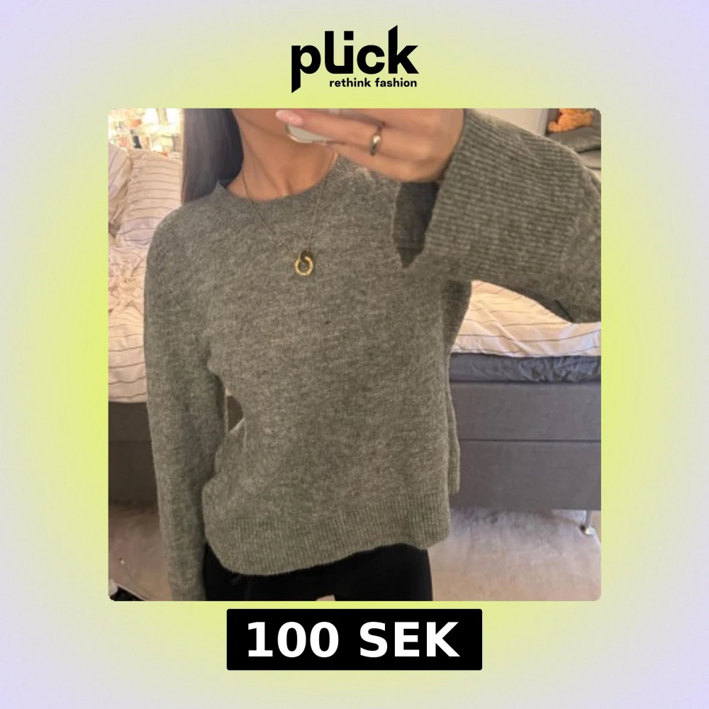 Mysig grå stickad tröja ifrån Hm! Strl M men ganska liten i passformen! Använd fåtal gånger💕