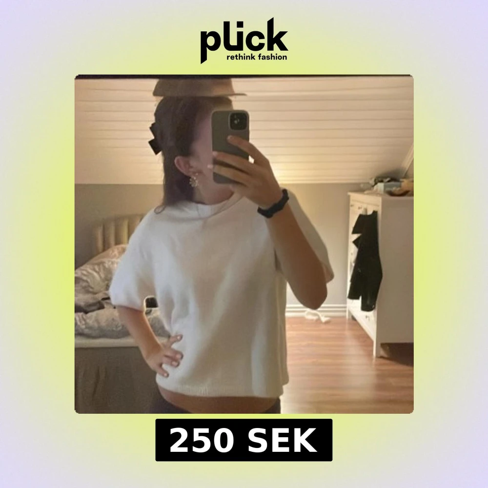 Vit stickad T-shirt från Ginatricot, använd en gång, strl M 🩷