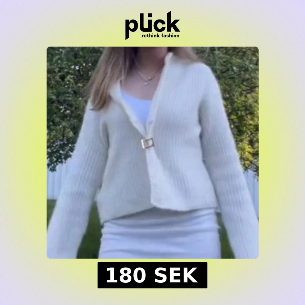 Säljer en vit ribbad kofta med lång ärm. Koftan har en mjuk och stickad känsla, perfekt att slänga över en topp. Den har en lite loose passform och är enkel att matcha med olika outfits.
