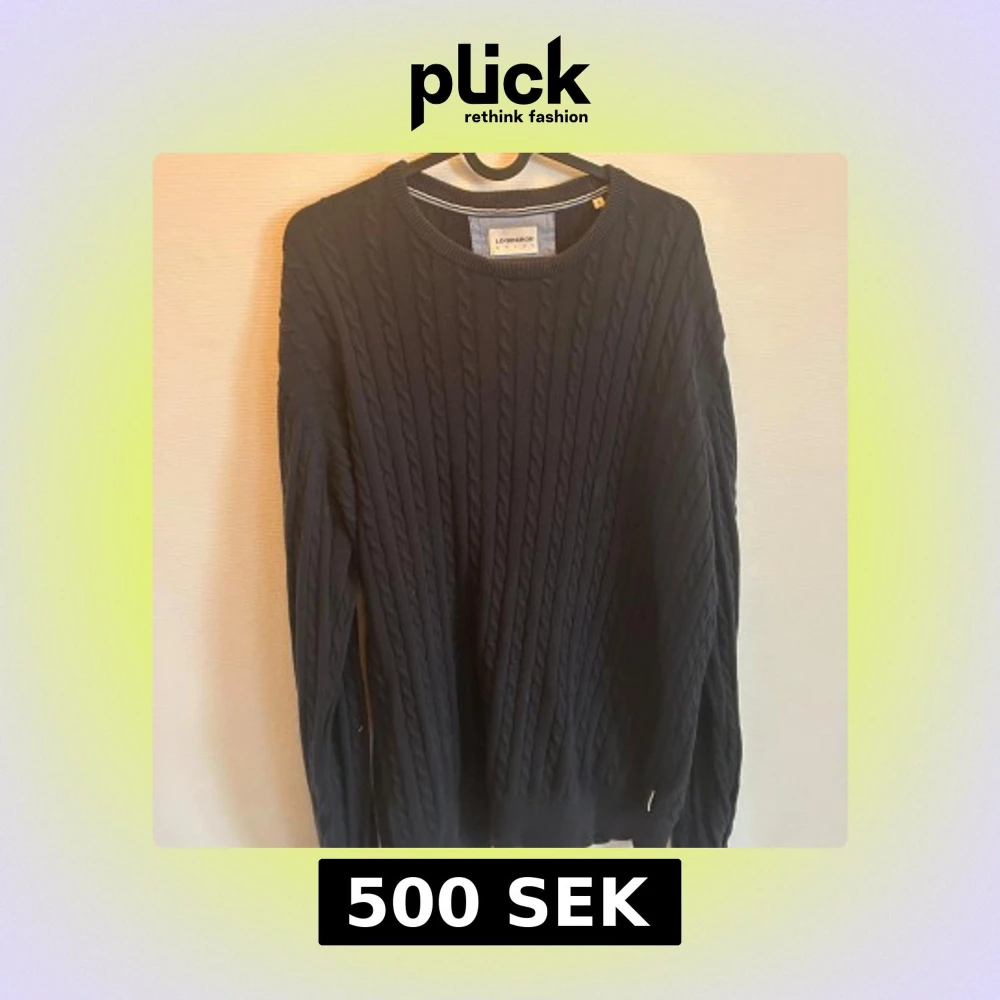 Snygg mörkblå kabelstickad tröja från Lindbergh med rund halsringning och långa ärmar. Hade sagt den är M men är S med oversize fit