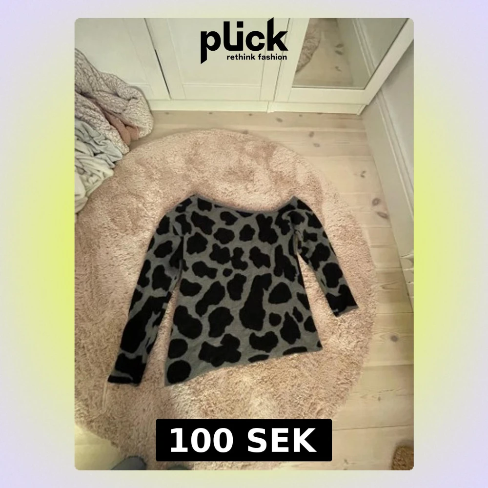 Säljer en super söt stickad offshoulder tröja i grått med svart leopardmönster. Storlek står inte men jag skulle gissa på M