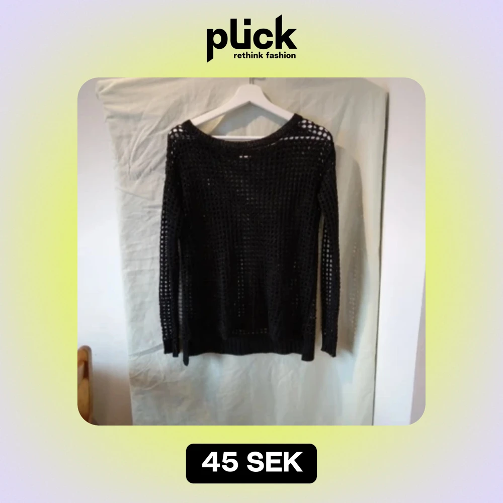 Säljer en cool svart stickad tröja med ett unikt hålmönster. Perfekt för lager-på-lager-stil eller som statement-plagg. Tröjan har långa ärmar och är superbekväm att ha på sig. Passar perfekt till både vardag och fest!