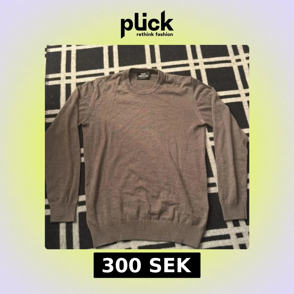 Säljer en stilren brun stickad tröja från Mads Nørgaard. Tröjan har rund halsringning, långa ärmar och ribbade muddar vid ärmslut och nederkant. Perfekt för lager-på-lager och enkel att matcha med jeans eller chinos.