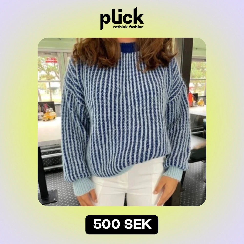 Blå stickad tröja, använd fåtal gånger. Storlek M/L men passar mig som har storlek S/M